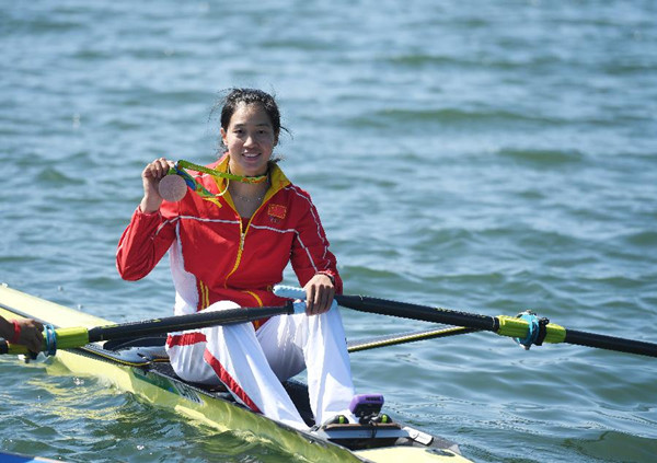 当日,在2016年里约奥运会赛艇女子单人双桨决赛中,中国选手段静莉以7分24秒13的成绩获得铜牌。 新华社记者燕雁摄