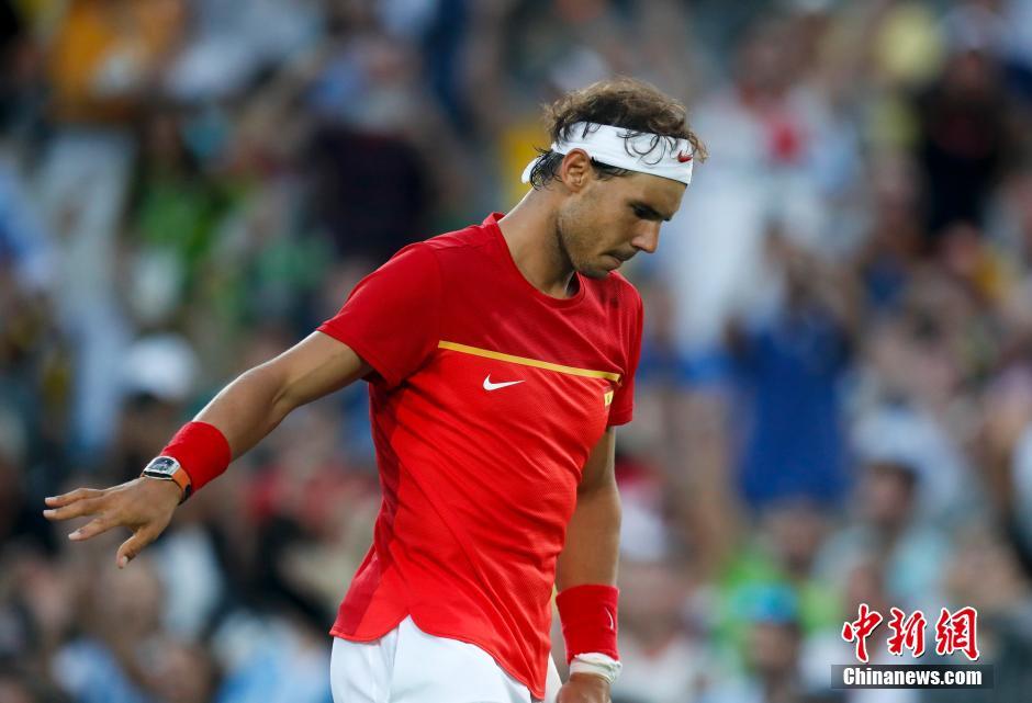 当地时间8月13日,2016年里约奥运会网球,男单半决赛,纳达尔不敌阿根廷选手德尔波特罗,以7-5/4-6/6-7(5)输掉比赛,职业生涯首次在奥运单打赛场失利,波特罗弥补了上届奥运半决赛出局的遗憾,将和穆雷争夺金牌。纳达尔和锦织圭争夺铜牌。中新网记者 杜洋 摄