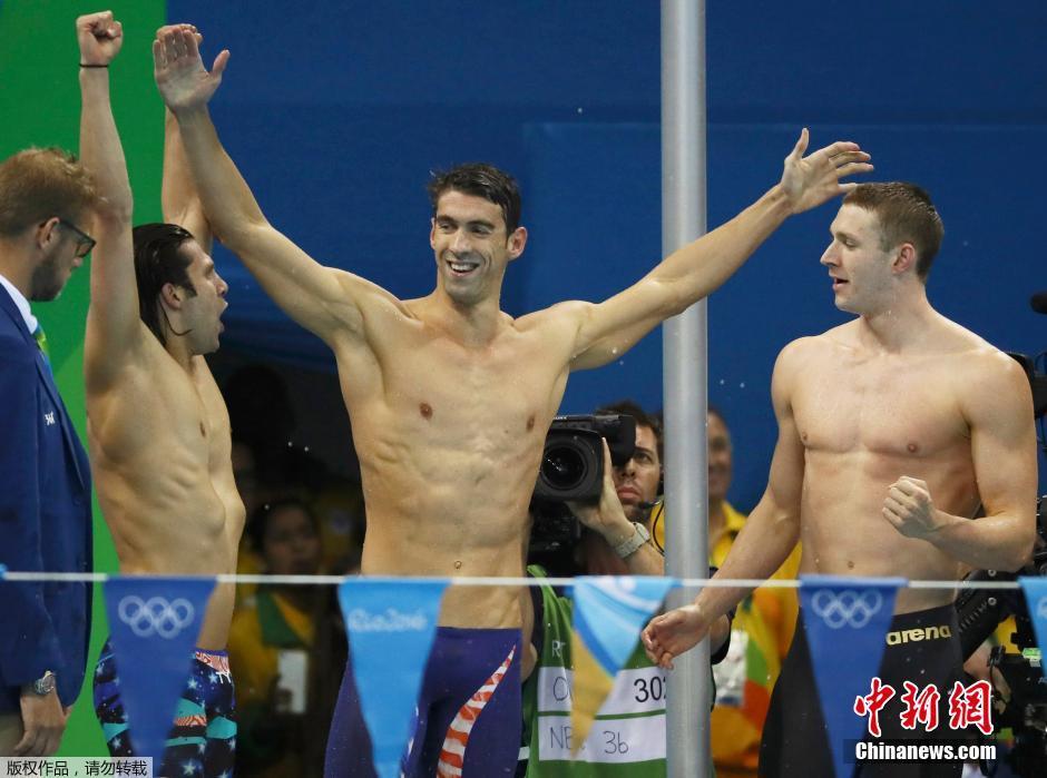 8月13日,在里约奥运会游泳赛场最后一天的比赛中,菲尔普斯领衔的美国队在男子4X100米混合泳接力决赛中,获得冠军,这块金牌成为菲尔普斯的奥运会第23金,完美收官。中国队因为犯规被取消成绩。