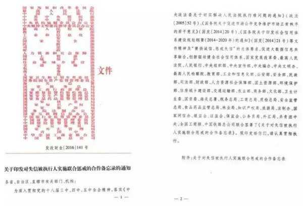 《关于印发对失信被执行人实施联合惩戒的合作备忘录的通知》(下称《备忘录》)