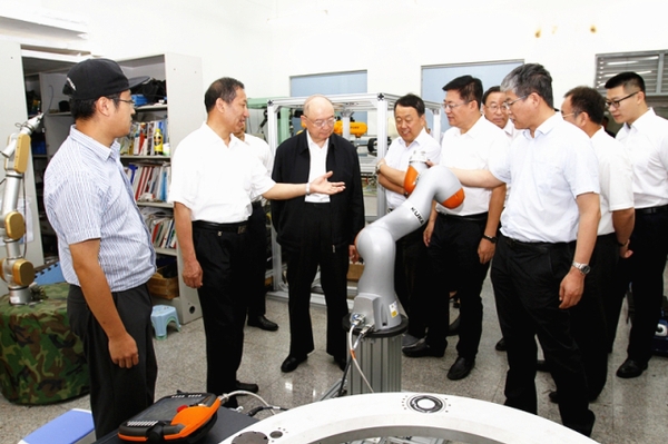 陈元一行先后考察了机器人技术与系统国家重点实验室、中德空间机器人技术联合实验室,观看了智能服务机器人、仿生机器人、工业机器人等实物展示和视频介绍,听取了科研人员的工作汇报,询问和了解了我校在机器人领域开展前沿研究和产业化方面的有关情况,并围绕如何强化金融机构、行业领军企业与我校深层次合作以推动相关领域的技术创新和成果转化进行了座谈与交流。