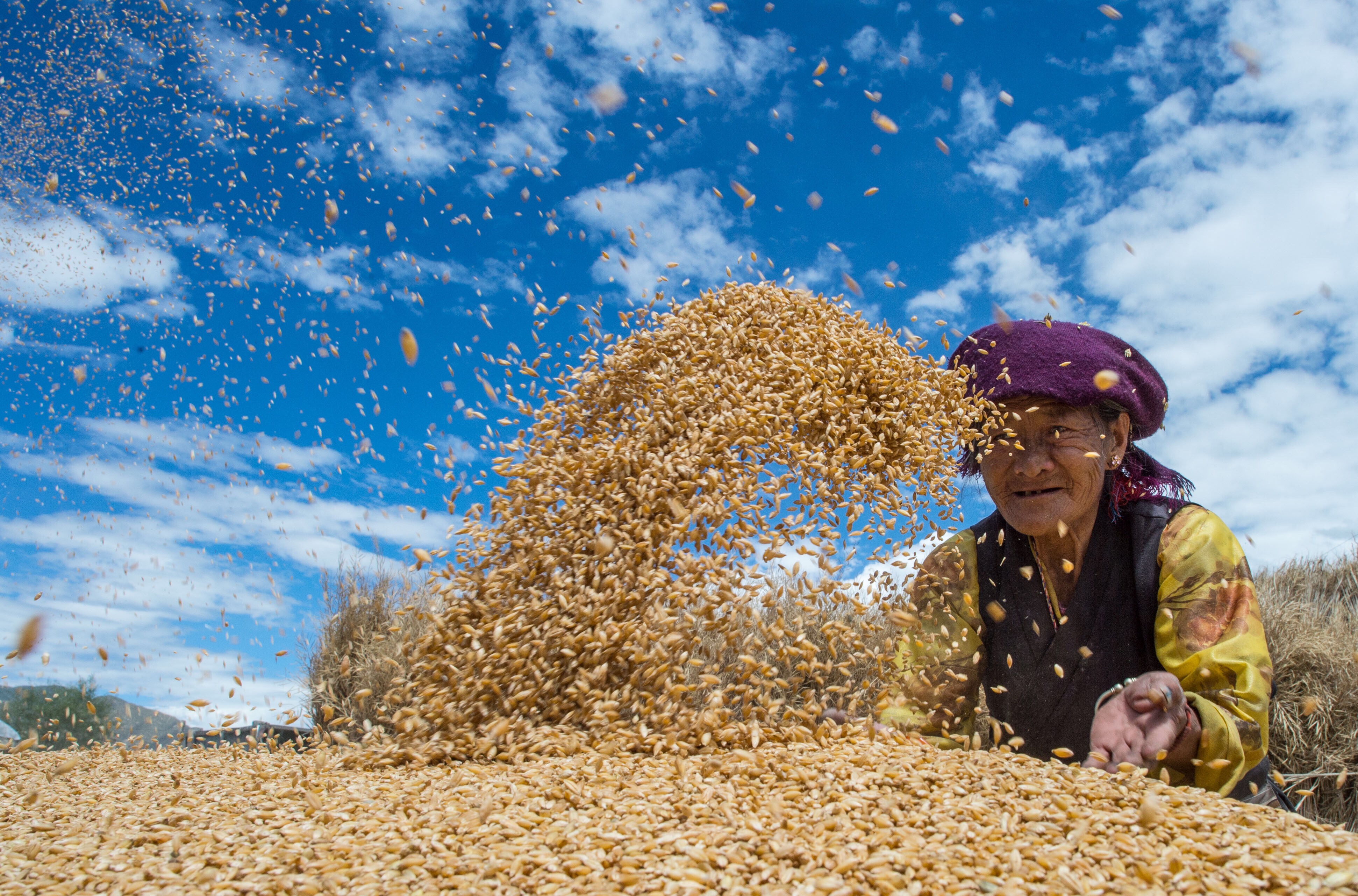 8月17日,拉萨市曲水县才纳乡四村村民在收割丰收的青稞。近期,西藏多地农田进入忙碌的收割阶段,在拉萨河谷、雅鲁藏布江两岸,到处是一派丰收的景象。新华社发