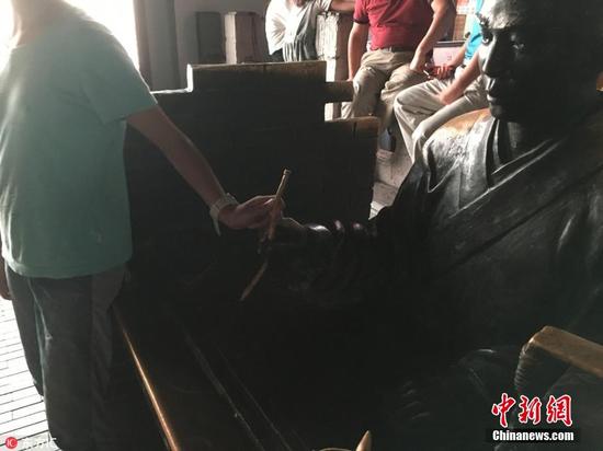 8月18日,南京夫子庙历史人文荟萃,是蜚声海外的旅游胜地,一年接待游客有数亿之多。通过放置在大照壁和江南京贡院前古代文人铜像外观就可以看出,夫子庙的人气有多旺盛?雕像的肩、手和笔被摸的油光发亮,金黄色的铜和黑色的铜锈产生明显的反差。