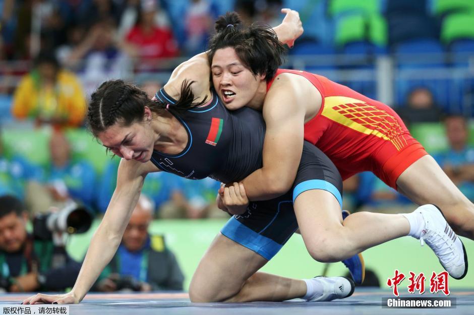 当地时间8月18日,2016里约奥运会摔跤女子自由式75公斤级铜牌争夺战中,中国选手张凤柳(红)8:4战胜白俄罗斯选手马扎柳克,获得一枚铜牌。