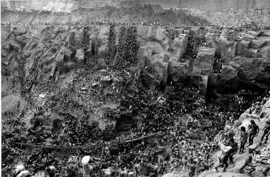 最早看到的是他拍摄巴西金矿的系列,5万多人密密麻麻地挤在一个巨大的矿坑里,他们背负着沉甸甸的矿土,顺着摇摇晃晃的、极为简易的木梯往上爬,随时都有坠落摔死的可能。