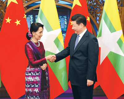习近平欢迎昂山素季国务资政访华,高度赞赏昂山素季国务资政追循先辈足迹、致力于推进中缅友好事业。习近平强调,中方愿同缅方一道,弘扬传统,继往开来,推动中缅全面战略合作伙伴关系不断取得新进展,为两国人民带来更多实实在在的利益,使两国人民永做好邻居、好朋友、好兄弟、好伙伴。