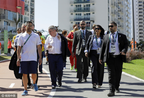 2016年8月1日,国际奥委会主席巴赫参观里约奥运村