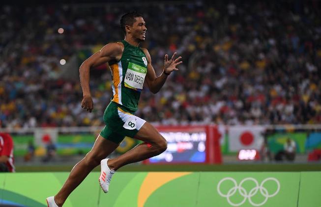 8月14日,南非选手范尼凯克在比赛中。当日,在2016年里约奥运会田径男子400米决赛中,南非选手范尼凯克以43秒03的成绩打破世界纪录并夺得冠军。 新华社记者韩瑜庆摄
