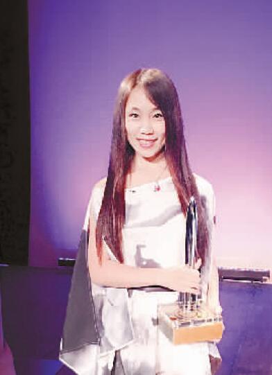 当地时间8月20日,第74届世界科幻大奖“雨果奖”在美国堪萨斯城会展中心举行,中国科幻女作家郝景芳获得最佳中篇小说奖。图为郝景芳在颁奖现场手捧奖杯。郝景芳供图