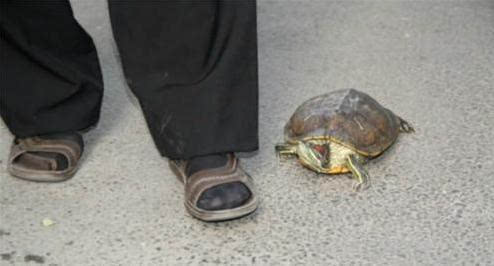 在南京的丹凤街附近有一位七旬老人,经常带着一只约2公斤重的乌龟在路边散步??雌鹄?,这只乌龟很通人性,跟在老人后面亦步亦趋,引得路人纷纷称奇。