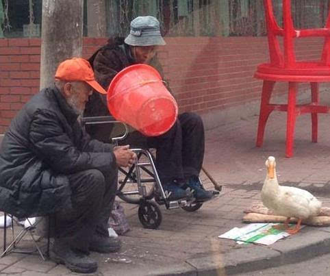 5月15日,网友@长春-郭伟伟发布微博称,在长春市平阳街附近,两位老人坐在路边休息,旁边的一只鸭子乖乖地站在铺好的纸壳上面。网友不禁感叹:这是城市多么和谐的一幕,现在的宠物太奇葩了!汗颜吧。