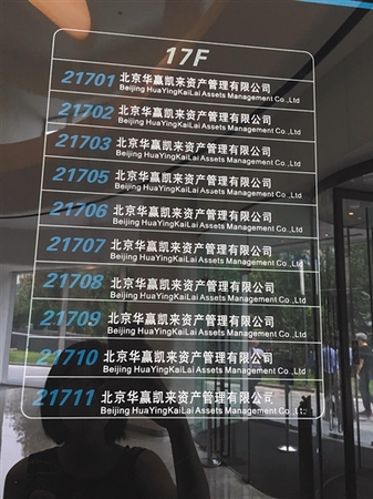 据银河SOHO物业人员介绍,截止到去年,华赢凯来陆续将旗下公司搬到这里。除租D座18层(5000平方米)、B座17层(2000平方米)两个整层外,华赢凯来还租了D座3层、5层、6层、11层的一部分以及部分地下一层,总面积超过3万平方米。