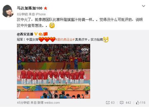 原来,这还真是亲自去里约看奥运的汉中乡党,出于对体育的热爱,他自费前往巴西,观赛的同时也在在奥运会这个大舞台上宣传家乡汉中。如果各位有留意的话,在奥运前几天的举重比赛中,这位乡党早就露过面了~