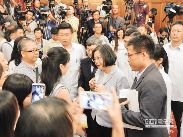 华夏经纬网8月22日讯:据台湾媒体报道,台湾地区领导人蔡英文上任百日“施政”满意度、信任度都已跌破5成,在就职3个月记者会上,对于拒绝“九二共识”的态度也不再模糊?!爸凑比鲈虏痰本植⒚挥忻墼缕冢炊褂?颗影响台湾安定的未爆弹“陆客锐减”、“退休军公教年金改革”、“清算国民党产”、“转型正义”等着她。