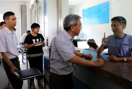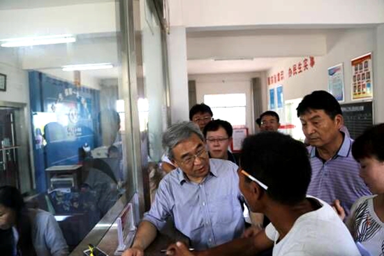 张桃林询问窗口工作人员农机购置补贴发放情况