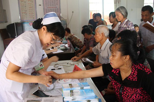 在“一对一扶贫”的同时,其他三项活动也正在紧张进行中。来自湘潭市中心医院的民革医生党员在新南村村部会议室为村民义诊,免费提供测血糖、测血压,以及呼吸内科、内分泌科、外科、中医科等各类疾病咨询服务;农业技术骨干党员走进了村民宋铁江的家庭农场,将专业技术服务送上门,帮助他解决了一直让他头疼不已的牛生病问题;而在新南村敬老院内,民革党员中的湘潭市中心医院护理专家还对这里的工作人员开展了养老院看护培训,帮助他们提高服务水平。