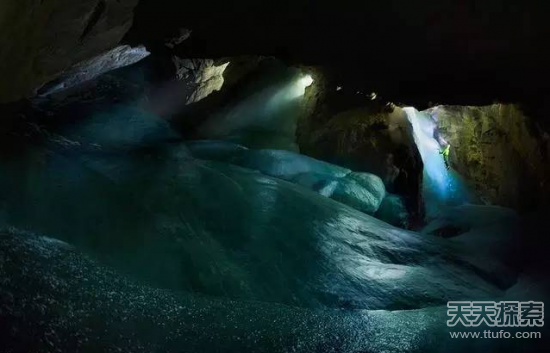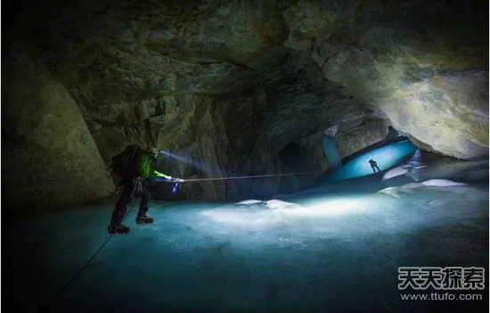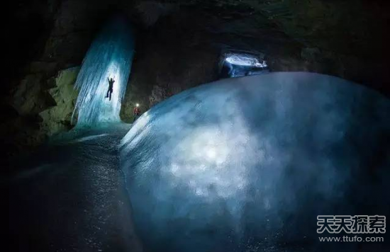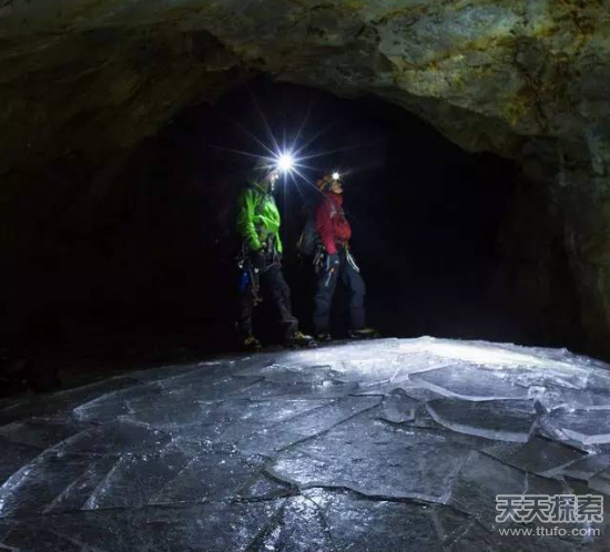 他们把这个永远都不会融化的世界拍摄了下来。这个巨大的坑洞内被清澈湛蓝的冰覆盖着,就像一个冰滑梯。因为这些冰是常年累积形成的。其中一些探险家描述,在其表面行走感觉就行飞一样。