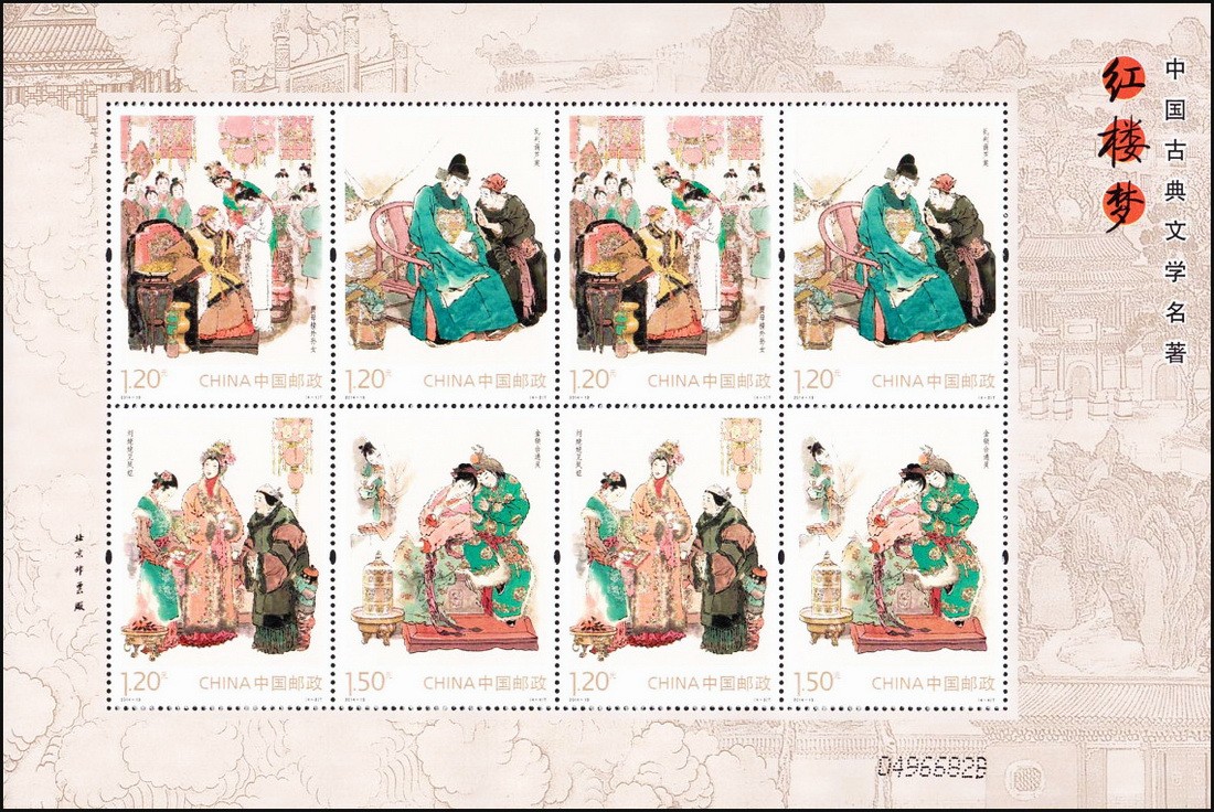 今年的6月8日,当我拿到中国邮政发行的中国古典文学名著“红楼梦”第二组邮品时,眼前一亮,多精美的印品!这版印票票幅较大,邮票规格40×54毫米。小型张外形规格138×70毫米,精选自中国古典文学名著《红楼梦》中的经典场景。