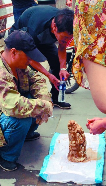“咦!这不是玉雕十八罗汉吗?”8月23日10时左右,沈阳市三好街、文化东路路口附近人行道上,一名男子的高声惊呼吸引了众人的注意,过往行人纷纷驻足观望。碰巧的是,沈阳晚报、沈阳网记者正好途经此地,目睹了一幕由四五名“托儿”组成的街头骗局。
