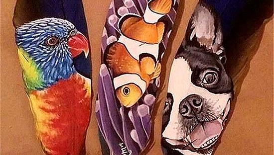 关键词:艺术家 将动物肖像 画在火鸡羽毛上面