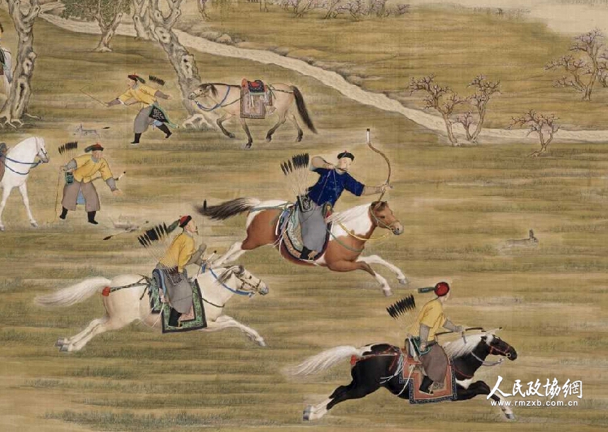 《乾隆皇帝射猎图》轴(局部) 清