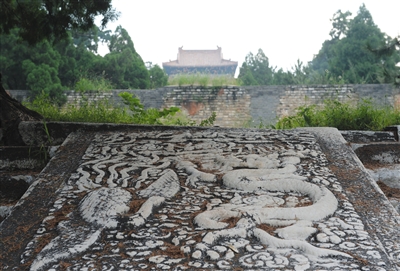 德陵,布满岁月痕迹的丹壁石。昨日,记者探访明十三陵中未对外开放的永陵和德陵。