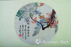 关键词:张熊扇面画 紫藤花开 清风徐来