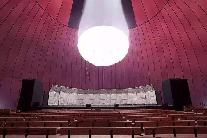 当夜幕四合,这个卧着的庞然大物散发着红色柔光,整个世界都静下来了,音乐厅的结构线丝丝入扣,像一枚孕育的蚕蛹。当音乐响起的时候,人们从中感受到生活的美好。