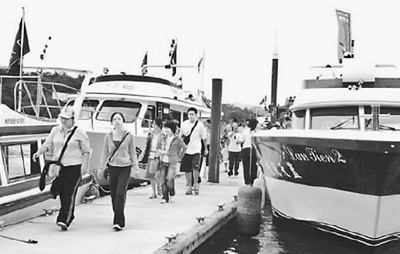陆客搭乘游艇在日月潭下船。(资料图片)