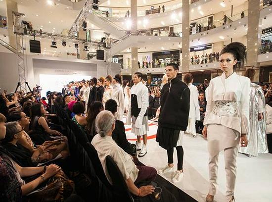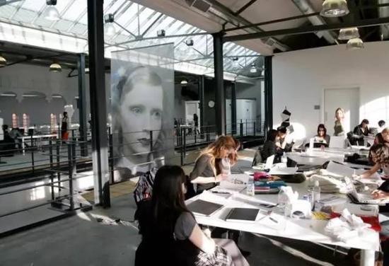 ▲巴黎ESMOD的学生在教学大厅展示作品