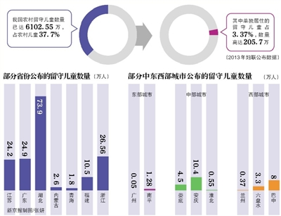 截至昨日记者发稿,浙江、重庆、山东、四川等省份或辖区内地市已公布摸底排查结果。至少有24个省份出台了具体的留守儿童关爱?;ご胧惺》菝魅芬?6岁以下儿童不得独居。