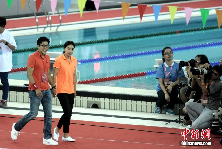 跳水王后郭晶晶与丈夫霍启刚挽手出席活动。 中新社记者 谭达明(香港分社) 摄