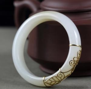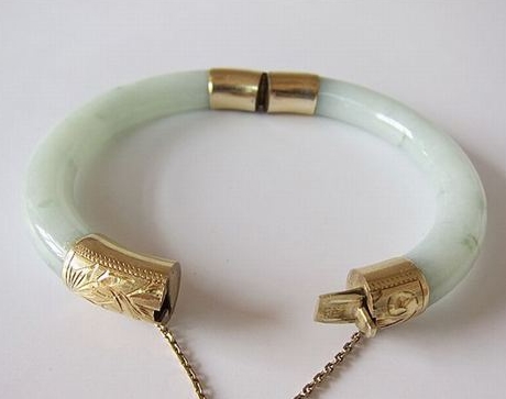 3、 镶嵌 如遇到手镯折断,则可以请玉雕人套上一段金箍,水平高者甚至可以达到毫无缺陷的精致程度。