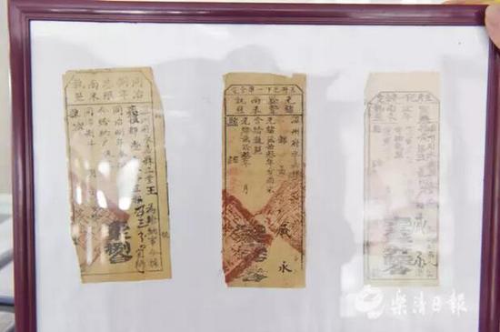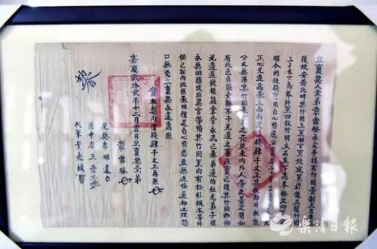 在章鸿耀的收藏室里,有一张温州地区目前为止发现的第一张官方竹林买卖地契。这张地契距今199年,详细记录嘉庆年官方间山林买卖情况,还盖有三个 官方印章?!耙晃惶┧忱先寺舻轿轮莨磐媸谐。僮致舾宋??!闭潞枰?年共收藏了16张温州的地契,从清朝到上世纪80年代,其中包括南塘镇民国时期最 早的地契。