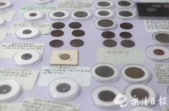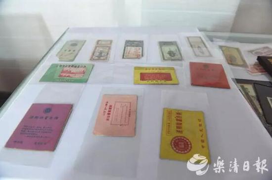 与这些化石摆放在一起的,还有300多枚古钱币,1700多张从民国到上世纪90年代的交通票,200多件抗战时期的红色文物等,琳琅满目的藏品让这个小屋充满了文化味。每一件作品下面都有一张小纸条,注明藏品的来历。