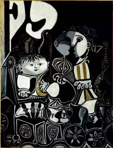 作品中的“两个小孩”分别是毕加索3岁的儿子和1岁的女儿。此画创作于毕加索风格趋于成熟的1950年。