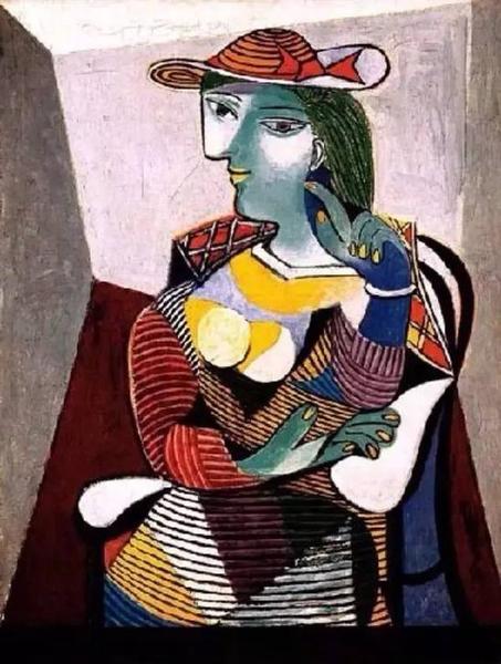 还有这幅《戴帽女人》也是毕加索的绘画作品。