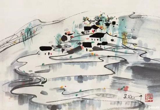 王健林本人收藏偏爱具有“时代精神”的作品,最钟情的就属吴冠中的画作(中国画创新方面颇有争议)但大多流向国外,于是他费尽千辛万苦几乎买下了国外所有的吴冠中作品。