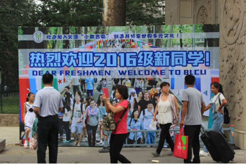 北京语言大学“小联合国”迎新展板