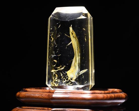 宝石级水晶内含物图像石之《鱼跃龙门》