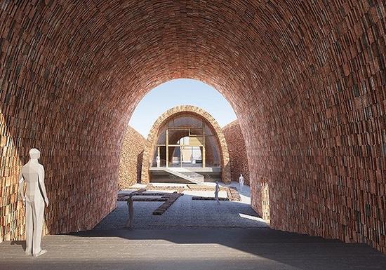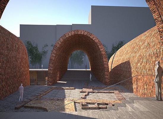 根据建筑模型和效果图看,建筑公司朱锫工作室将整个博物馆分成了地上和地下两部分。地上部分正是工人们用瓦片层层堆砌出的“窑”,远看像极了巧克力卷,近看则能通过仿古的瓦片堆叠,感受到“窑”简单、古朴的气质。