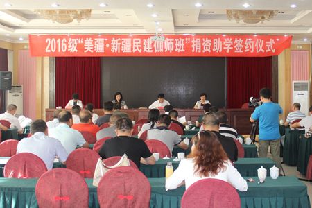 区委会秘书长翟建芳介绍了2016级“美疆·新疆民建班”筹备工作进展情况,美疆基金会新疆站常务副站长孟玉莲就捐助人关心的一些问题作了解答,50名资助人在签约仪式现场签署了资助协议。
