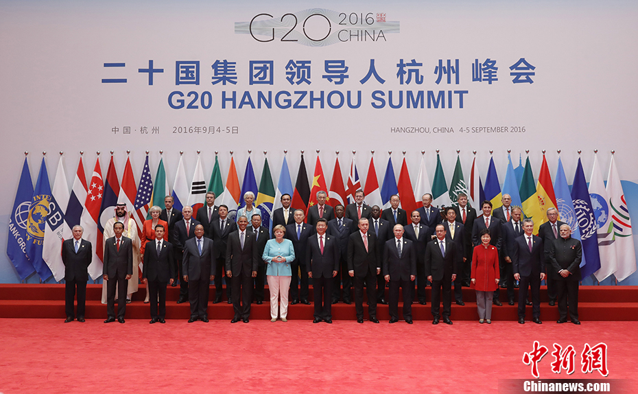 9月4日,二十国集团领导人杭州峰会在杭州举行。中国国家主席习近平同与会领导人合影。 中新社记者 盛佳鹏 摄