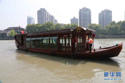 据了解,武林门码头始建于隋代,建筑面积约4000平方米,是杭州水上交通最重要的组成部分,也是浙江省内内河码头之最。从这里出发的运河游船,将重走古运河的“漕运”之路。新华网 翁 璟 摄