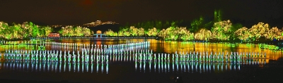 演员在《最忆是杭州》实景演出交响音乐会上表演《采茶舞曲》。
