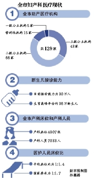 委员提案内容显示,目前北京市产科人员7033人,平均床位比为1:1.4,明显低于国家要求的1:1.7的标准,说明助产人员严重不足。