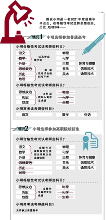 记者从中了解到,2021年起,参加普通高考的考生在高考时只需考语数外三科,报考高职院校分类招生考试的考生则无须参加普通高考。