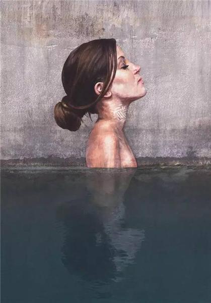 他的画风写实、细腻又稳重,笔触细腻地将女性的温柔形象与神情画出来。