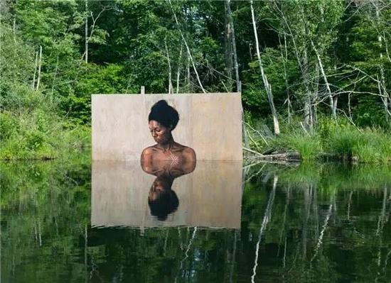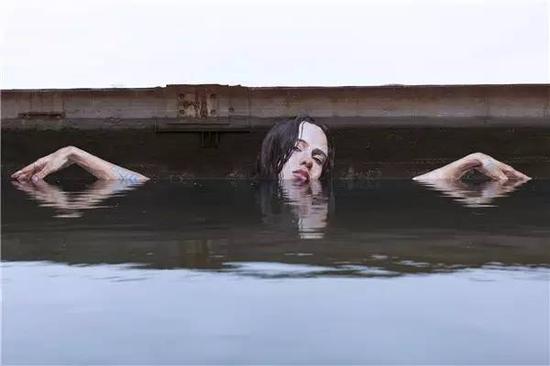 与一般街头艺术家不同,Sean Yoro的“画板”不是普通的墙面,而是与水交界的废弃建筑物的墙面,他以独特的水壁画结合花草等自然景观描绘出惊人的作品,所以他常常需要在冲浪板上作画。