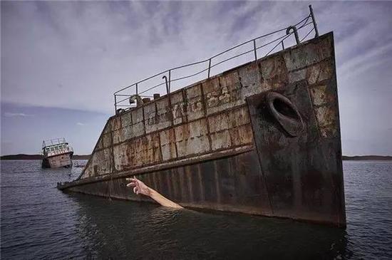 除了货运码头,Sean也会选择在废弃的船只上作画。画作随着水位的高低而有所变化,同一副画却能给人带去不同的感受。
